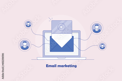 Wall mural : Business customer newsletter subscribers interacting with video content message send through email c