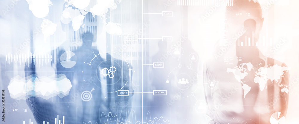 Wall mural business dashboard with key performance indicators on a virtual screen city interface - Wall murals Wall mural business dashboard with key performance indicators on a virtual screen city interface - Wall murals