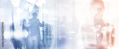 The watermark will not be included on Wall mural.: Business dashboard with key performance indicators on a virtual screen city interface