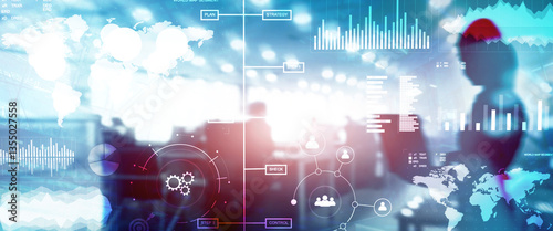Wall mural business dashboard with key performance indicators on a virtual screen city interface - Wall murals Wall mural business dashboard with key performance indicators on a virtual screen city interface - Wall murals