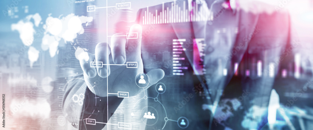 Wall mural business dashboard with key performance indicators on a virtual screen city interface - Wall murals Wall mural business dashboard with key performance indicators on a virtual screen city interface - Wall murals