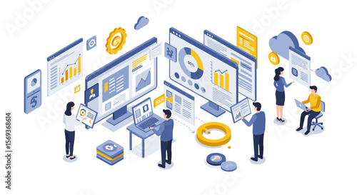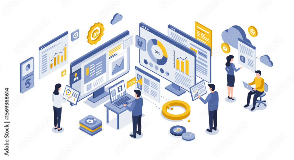 Wall mural business data analysis and networking vector illustration in isometric flat style for corporate desi - Wall murals Wall mural business data analysis and networking vector illustration in isometric flat style for corporate desi - Wall murals