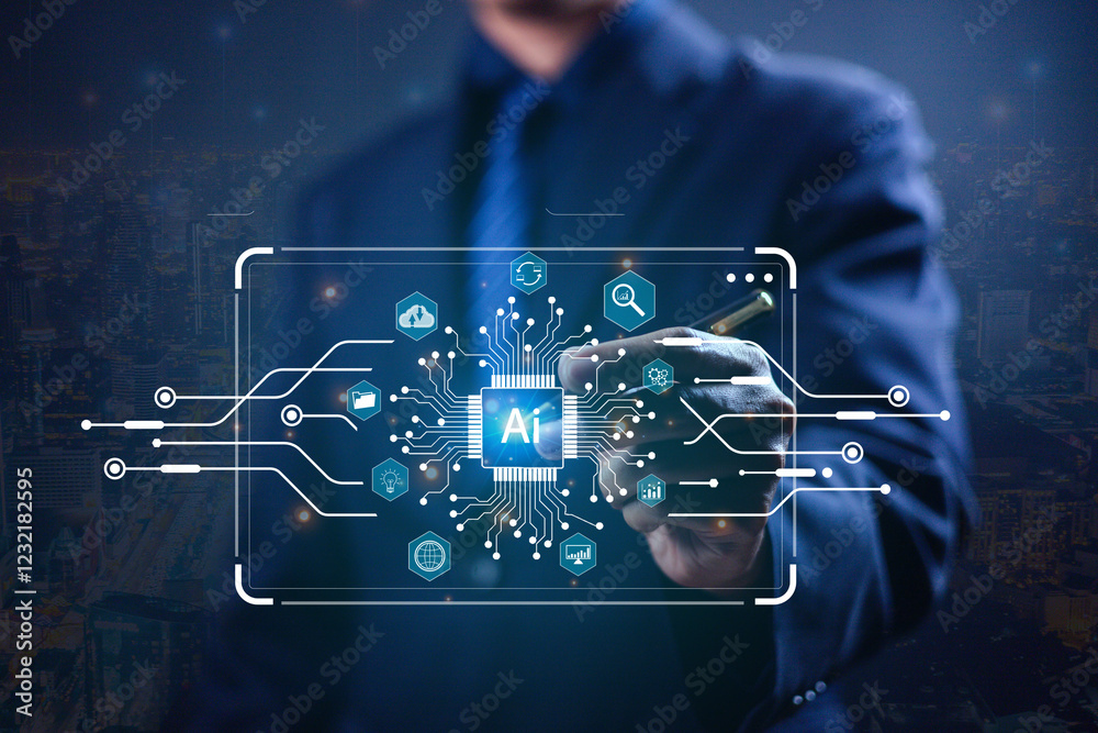 Wall mural business data using ai technology background using computer customer service showing data connection - Wall murals Wall mural business data using ai technology background using computer customer service showing data connection - Wall murals