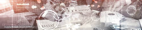 Wall mural business digital interface with graphs, charts, icons and timeline on blurred background. website he - Wall murals Wall mural business digital interface with graphs, charts, icons and timeline on blurred background. website he - Wall murals