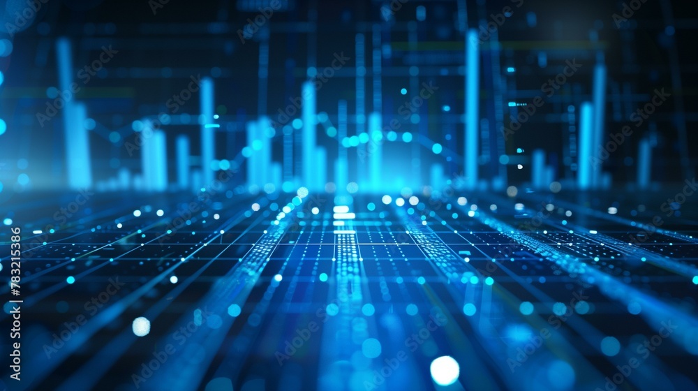 Wall mural business dynamics blue background with digital chart, internet skyscraper backdrop science computer  - Wall murals Wall mural business dynamics blue background with digital chart, internet skyscraper backdrop science computer - Wall murals