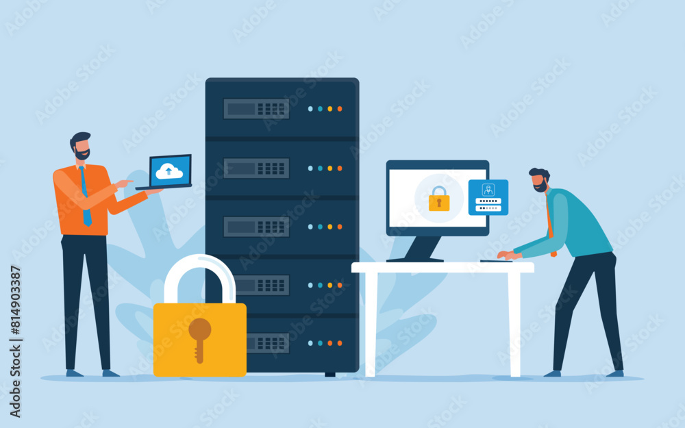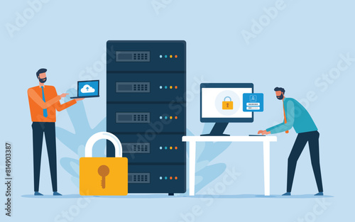 Wall mural business flat vector design technology data center and cloud computing server storage service with a - Wall murals Wall mural business flat vector design technology data center and cloud computing server storage service with a - Wall murals