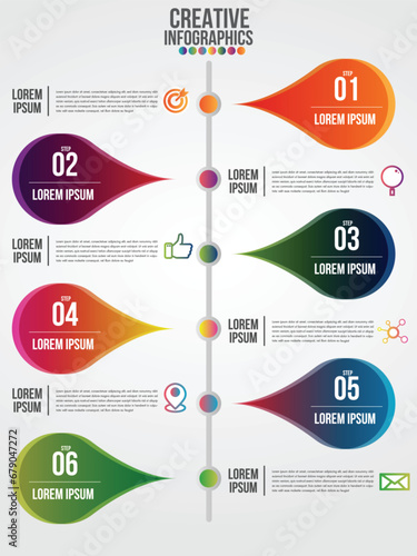 Business infographic design template with icons and 6 numbers options or steps - can be used for procWall mural