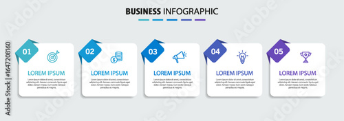 Business infographic template with 5 options or steps - can be used for workflow layout, diagram, annWall mural