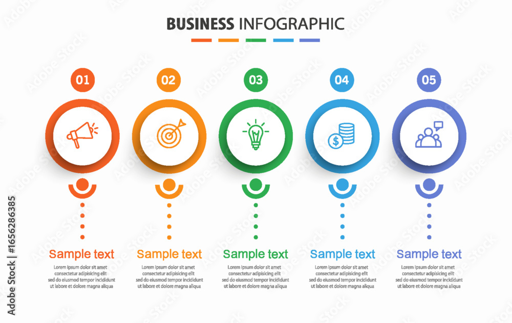 Wall mural business infographic template with 5 options or steps. can be used for workflow layout, diagram, ann - Wall murals Wall mural business infographic template with 5 options or steps. can be used for workflow layout, diagram, ann - Wall murals