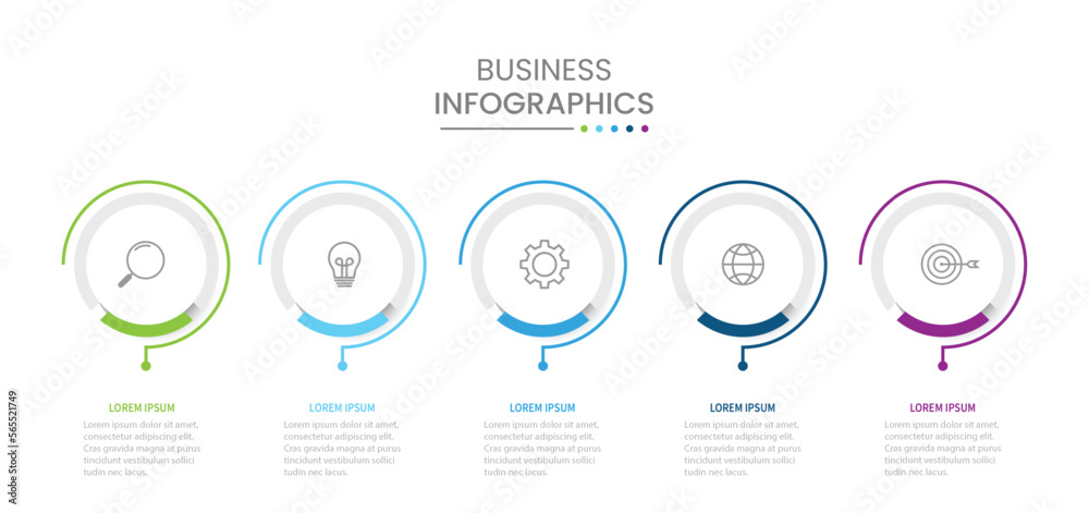 The watermark will not be included on Wall mural.: Business infographic thin line process with circle template design with icons and 5 options or steps