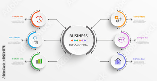 The watermark will not be included on Wall mural.: Business infographic vector design template with 6 options, steps or processes - can be used for work