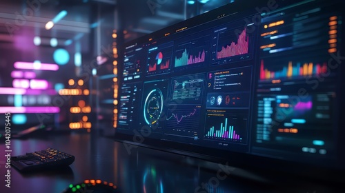 Wall mural business intelligence analyst dashboard on virtual screen. big data graphs charts. big data. ultra r - Wall murals Wall mural business intelligence analyst dashboard on virtual screen. big data graphs charts. big data. ultra r - Wall murals