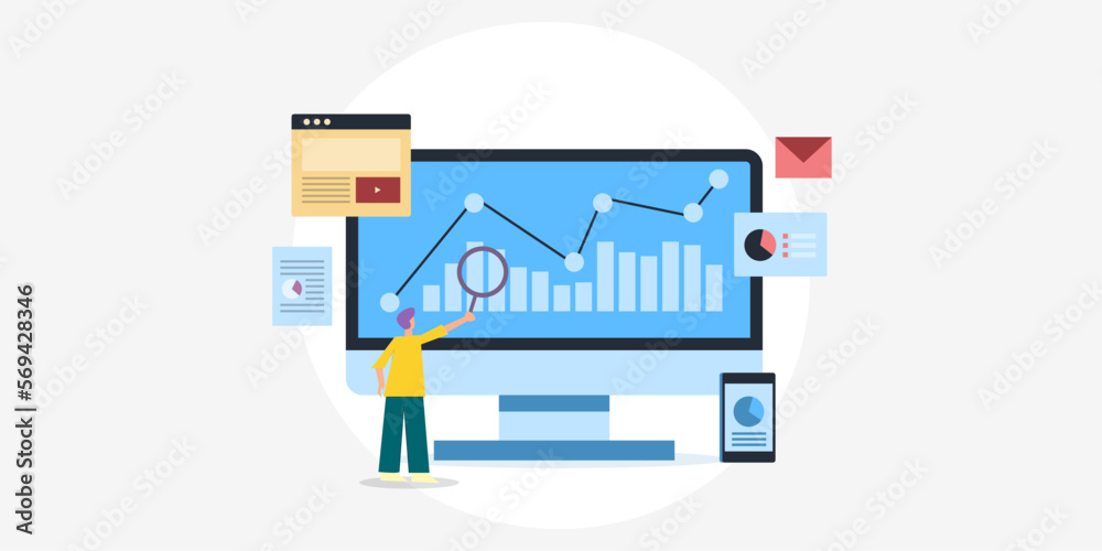 The watermark will not be included on Wall mural.: Business intelligence application collecting displaying data on computer screen, businessman monitor