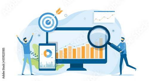 Wall mural business people analytics and monitoring on web report dashboard monitor concept and vector illustra - Wall murals Wall mural business people analytics and monitoring on web report dashboard monitor concept and vector illustra - Wall murals