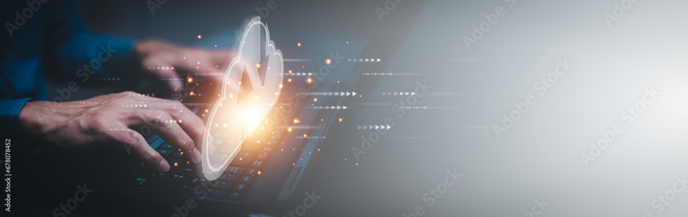 The watermark will not be included on Wall mural.: Business people using laptop with cloud computing system , storage and data transfer cloud network,