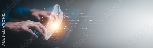 Wall mural : Business people using laptop with cloud computing system , storage and data transfer cloud network,