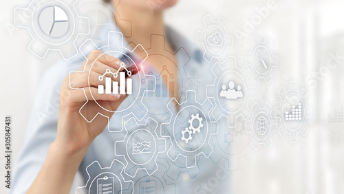 The watermark will not be included on Wall mural.: Business process gears abstract diagram with gears and icons - workflow and automation technology con