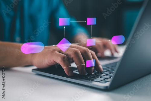 Wall mural : Business process with flowchart, implement and improve, business structure, process workflow - softwa