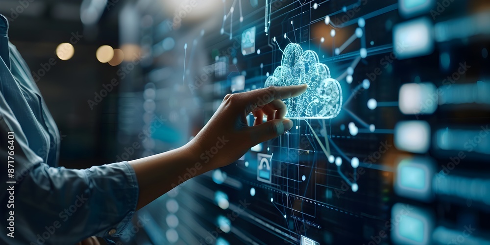 Wall mural business professional accessing futuristic virtual cloud computing interface - Wall murals Wall mural business professional accessing futuristic virtual cloud computing interface - Wall murals