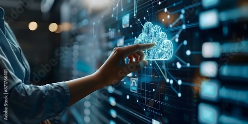 The watermark will not be included on Wall mural.: Business professional accessing futuristic virtual cloud computing interface