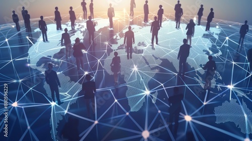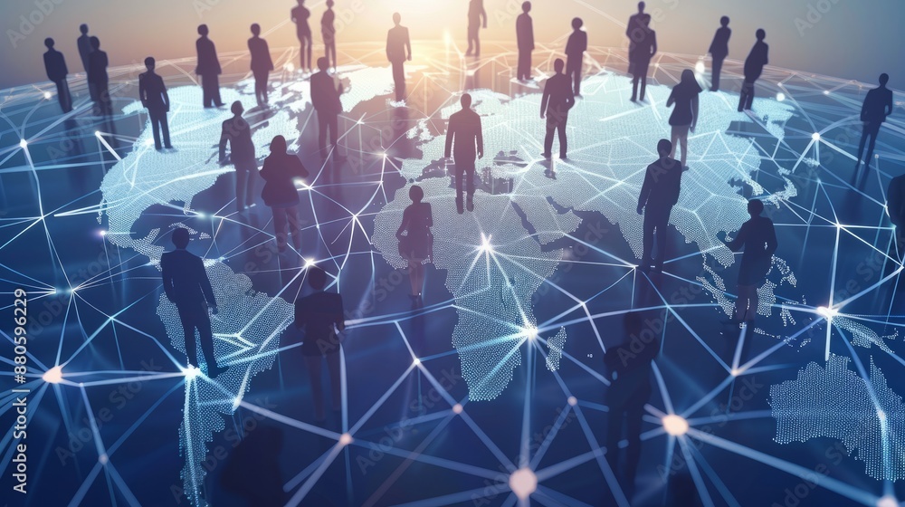 Wall mural business professionals connecting globally with modern digital interface - innovative network and ea