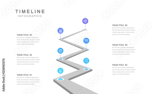 The watermark will not be included on Wall mural.: Business road map timeline infographic concept - with icons and 6 steps - can be used for workflow lay