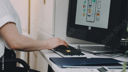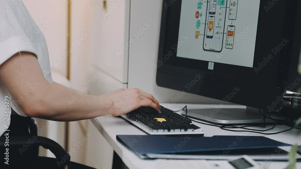 The watermark will not be included on Wall mural.: Business team collaborating on uxui design for system development with creative planning and prototy