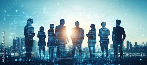 Wall mural business team discussing data and code for tech advancement. - Wall murals Wall mural business team discussing data and code for tech advancement. - Wall murals