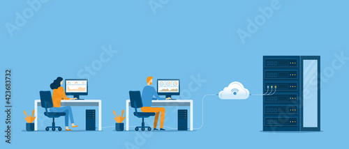 Wall mural business technology cloud computing service concept and datacenter storage server connect on cloud w