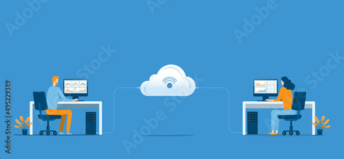 Wall mural business technology cloud computing storage server service connect concept with administrator and de