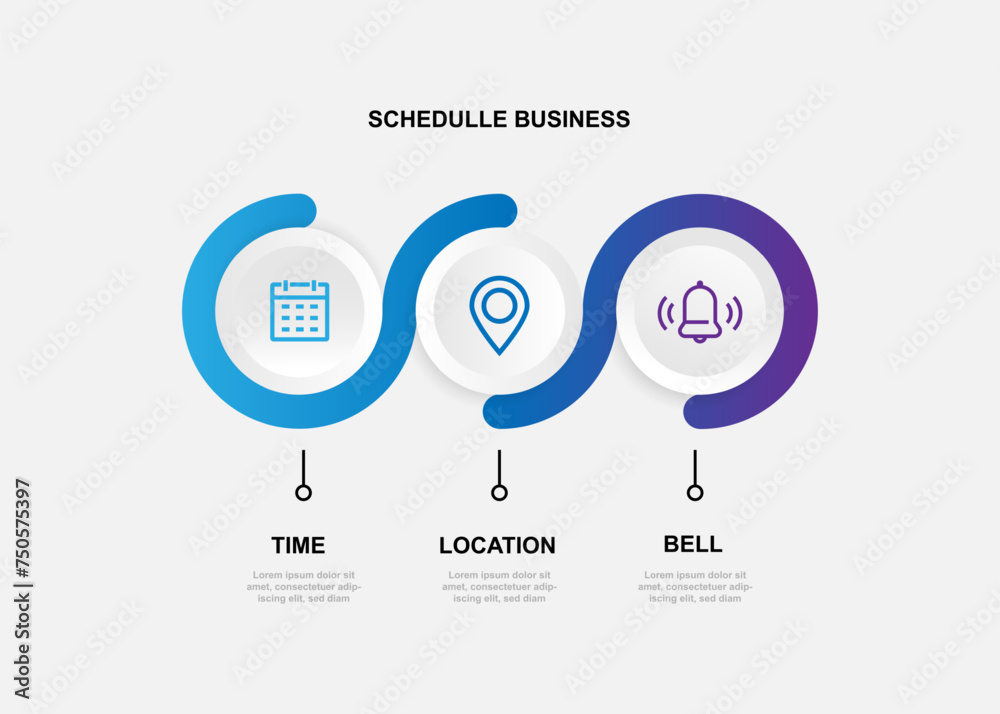 The watermark will not be included on Wall mural.: Business template infographic vector element with circle line connected and 3 step process or option
