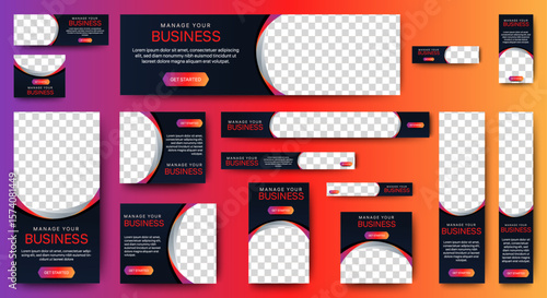 Wall mural business web banner template set. vector horizontal, vertical, square web ads banner. abstract busin