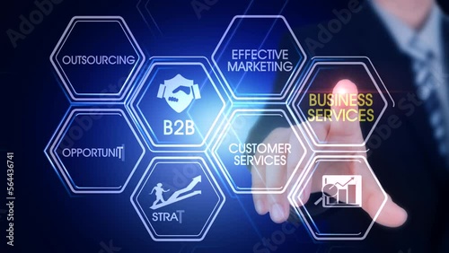 Wall mural : Business_services hexagonal touch screen concept hexagonal virtual touch screen concept with man tou