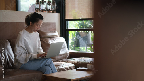 Wall mural businessman's hands are finger point to searching for information. using laptop with your website. d