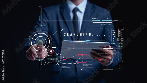 Wall mural businessman are using a laptop and touching the virtual screen interface for function high technolog