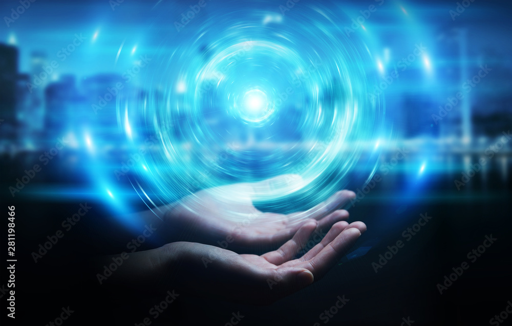Wall mural businessman creating new futuristic energy power source 3d rendering - Wall murals Wall mural businessman creating new futuristic energy power source 3d rendering - Wall murals