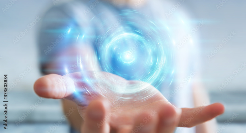 Wall mural businessman creating new futuristic energy power source 3d rendering - Wall murals Wall mural businessman creating new futuristic energy power source 3d rendering - Wall murals