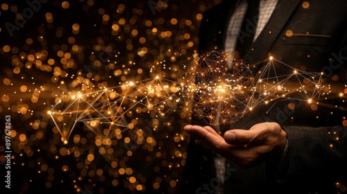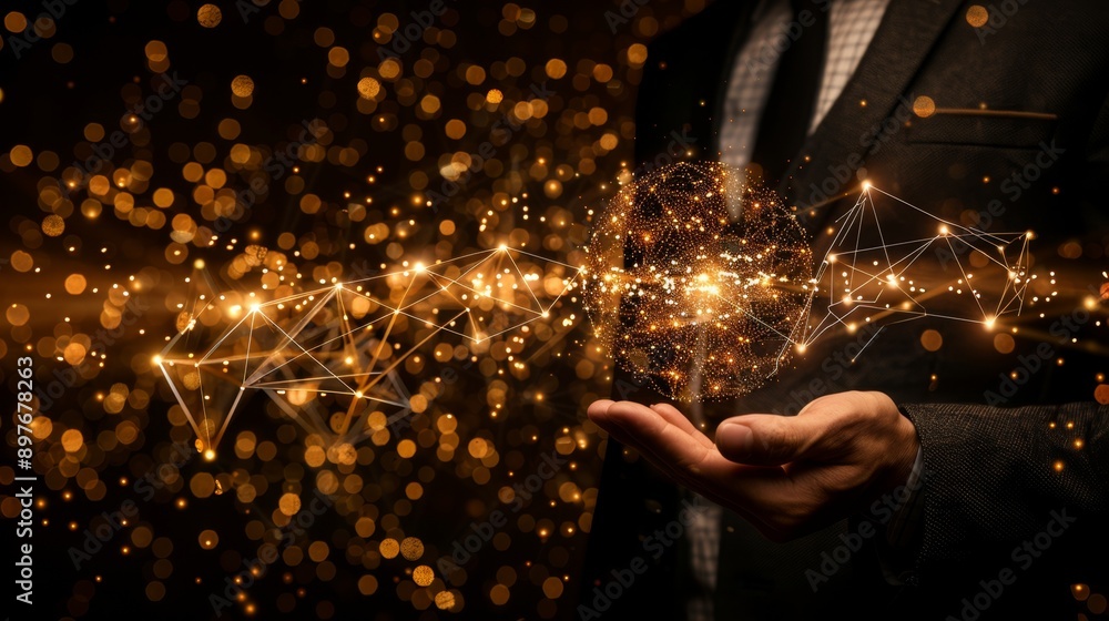 Wall mural : Businessman holding global network and data exchange on bokeh background