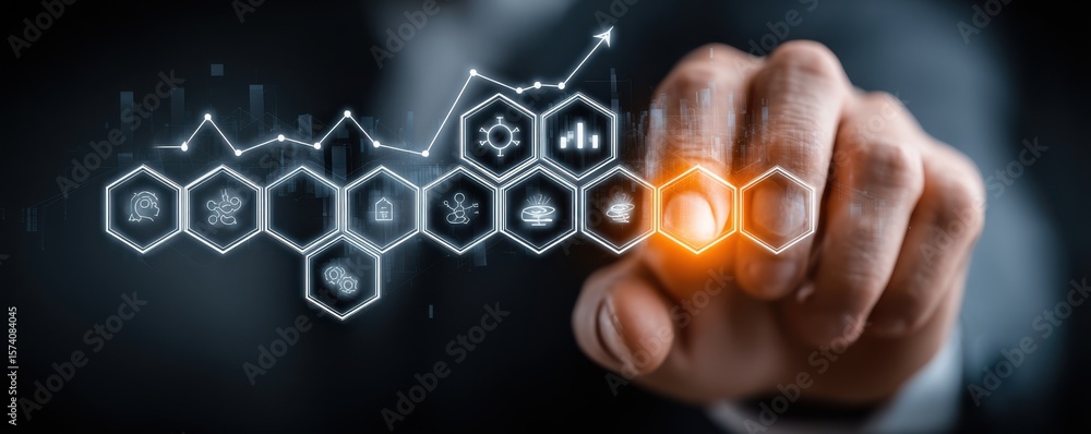 Wall mural : Businessman interacting with augmented technology and data visualization on a tablet device