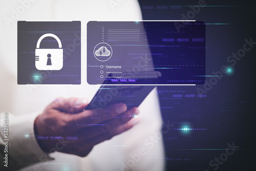 Wall mural businessman logging into cyberspace through secure online technology and protection and authenticati - Wall murals Wall mural businessman logging into cyberspace through secure online technology and protection and authenticati - Wall murals