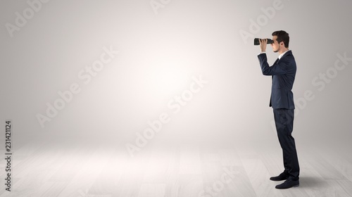 The watermark will not be included on Wall mural.: Businessman looking forward with binoculars in an empty space