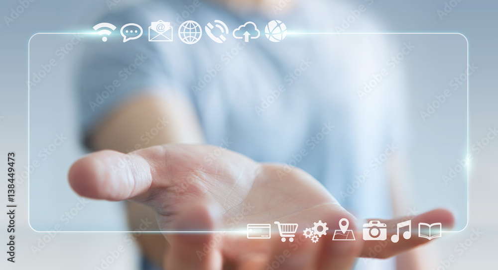 Wall mural businessman surfing on internet with digital tactile interface 3d rendering - Wall murals Wall mural businessman surfing on internet with digital tactile interface 3d rendering - Wall murals