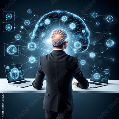 Wall mural businessman touching the brain working of artificial intelligence (ai) in the futuristic business an - Wall murals Wall mural businessman touching the brain working of artificial intelligence (ai) in the futuristic business an - Wall murals