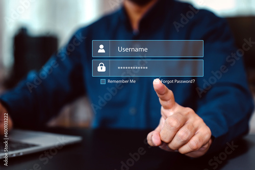 Wall mural businessman use laptop login register username and password identity on webpage concepts of cyber se - Wall murals Wall mural businessman use laptop login register username and password identity on webpage concepts of cyber se - Wall murals