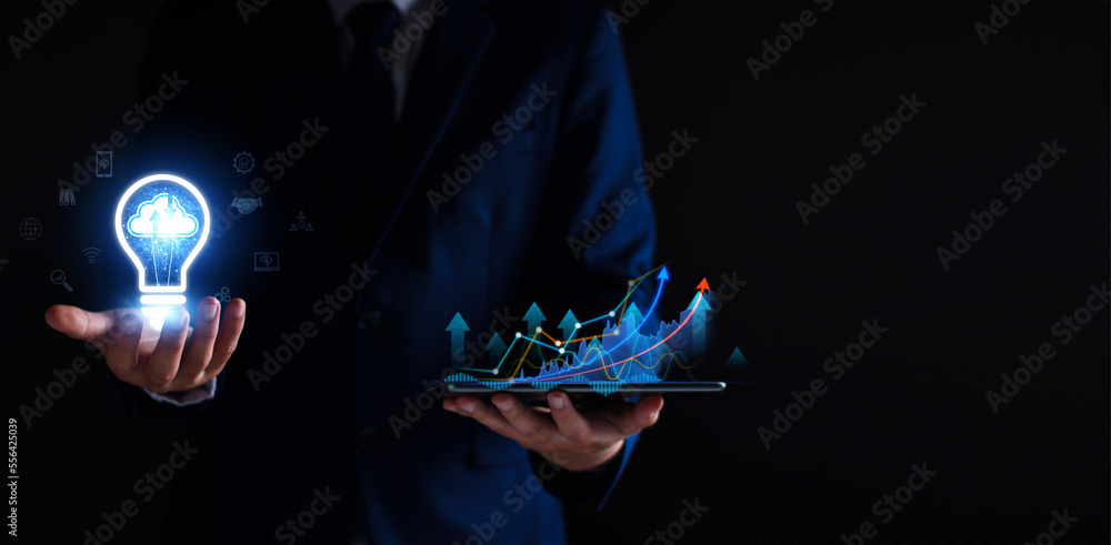 Wall mural businessman using cloud technology connect business data. cloud computing. internet cloud technology - Wall murals Wall mural businessman using cloud technology connect business data. cloud computing. internet cloud technology - Wall murals