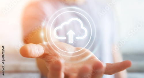 The watermark will not be included on Wall mural.: Businessman using digital cloud 3d rendering