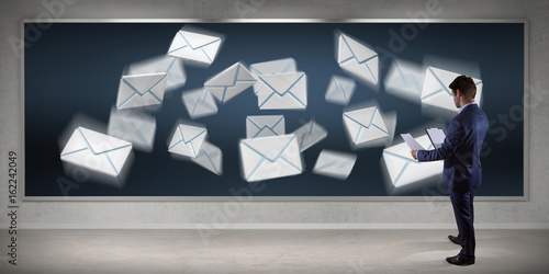The watermark will not be included on Wall mural.: Businessman using email interface on a board 3d rendering