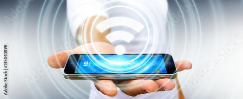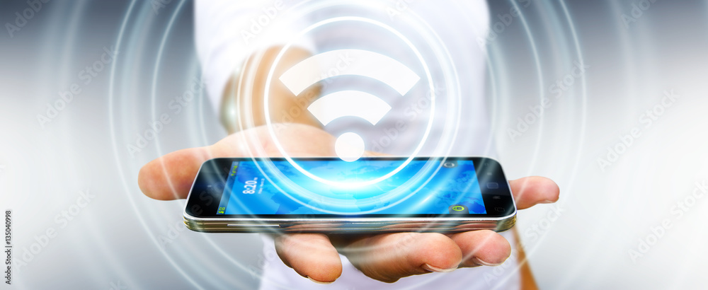 Businessman using free wifi hotspot interface 3d renderingWall mural