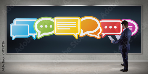 Wall mural businessman using social network interface on a board 3d rendering - Wall murals Wall mural businessman using social network interface on a board 3d rendering - Wall murals