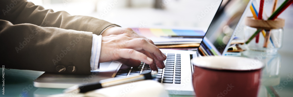 Wall mural businessman working typing using notebook concept - Wall murals Wall mural businessman working typing using notebook concept - Wall murals